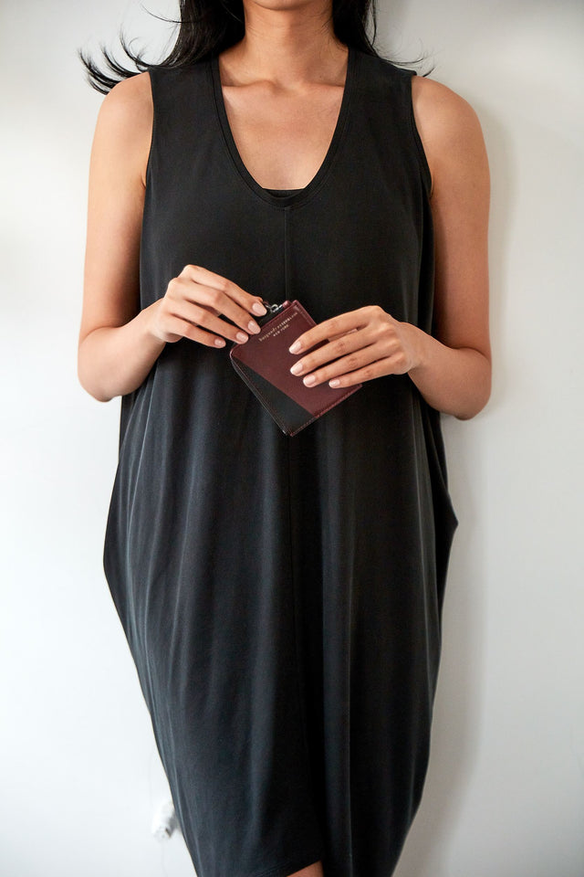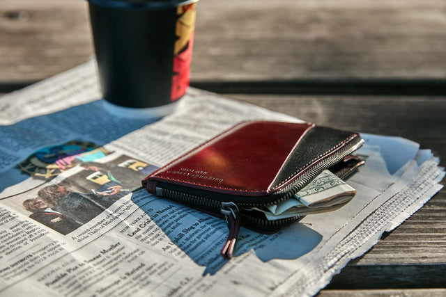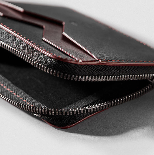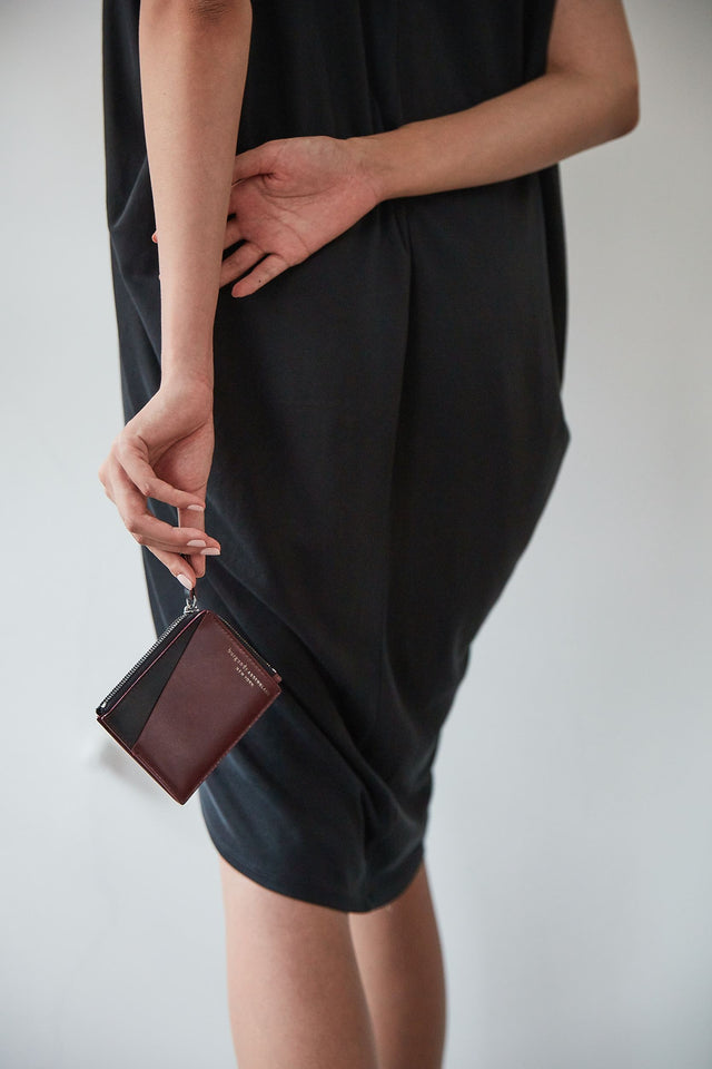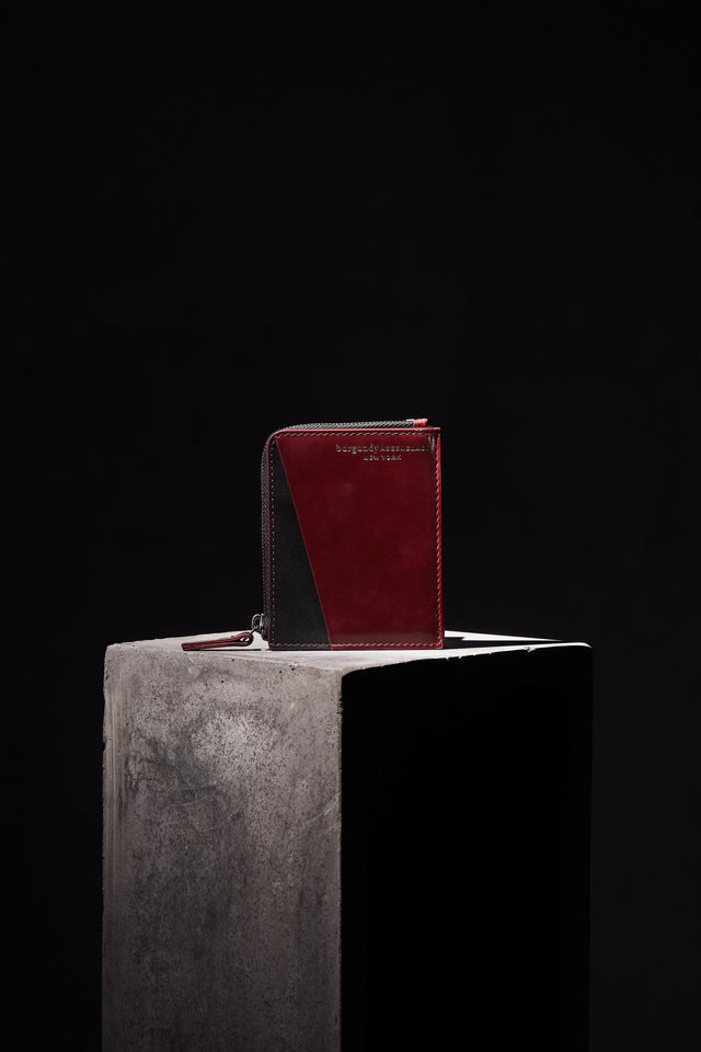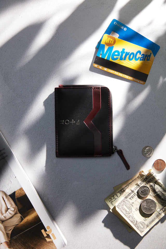 Not a fan of bulky wallets? Neither are we. Beta is specially designed to hold multiple cards and cash while appearing slim and elegant. The two-toned wallet is composed of burgundy and black vegetable-tanned leather, offering three slots for cards and a zippered compartment for bills and coins. Made in collaboration with Tina Fun, we reworked this piece repeatedly to ensure that the cards fit easily without sacrificing the wallet’s graceful profile.
