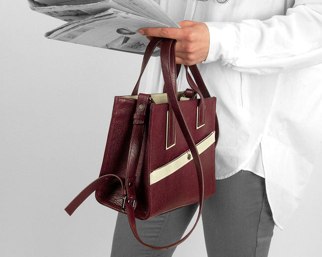 Don’t be fooled: Tien S may be the mini version of our classic Tien tote bag, but it’s got a style and attitude all its own. This small tote is perfect for those about-the-town days when rocking a casual glam is a priority. It fits all your daily essentials, from cellphone to sketchpad, and a graceful magnetic closure helps to keep it all secure. Made of soft burgundy calfskin, this tote will be your go-to bag for years on end.